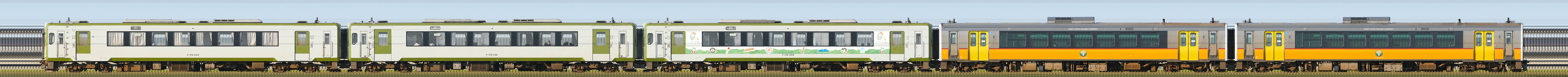 キハ110 200番代+キハE120(非公式側)。山形ディスティネーションキャンペーン時の山形日和ラッピング。(2014年10月26日撮影)